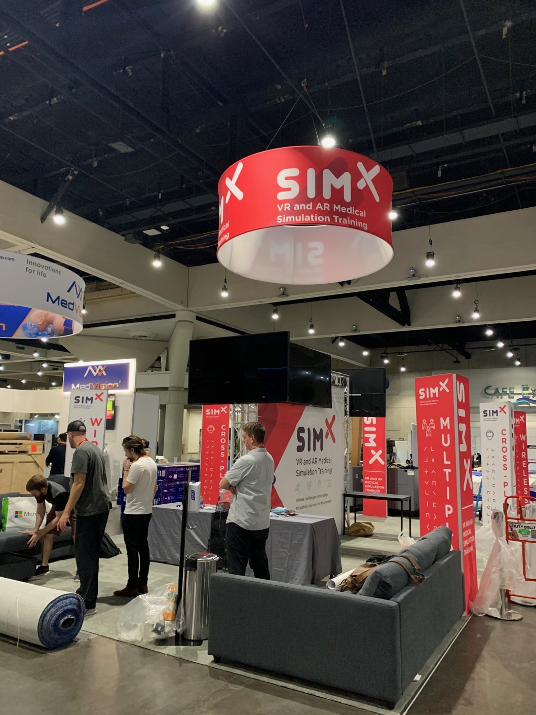 The CEO and founder of SimX, Ryan Riberia, urgently called 858 Graphics, 5 days before the 20th annual International Meeting on Simulation in Healthcare. Ryan needed to spruce up his trade show display in a hurry. With only 5 days to spare, our team at 858 Graphics was able to produce everything Ryan needed from fabric hanging banners and tower displays to temporary floor graphics. Not only was the event a success, but everything was hand-delivered and arrived ahead of schedule.