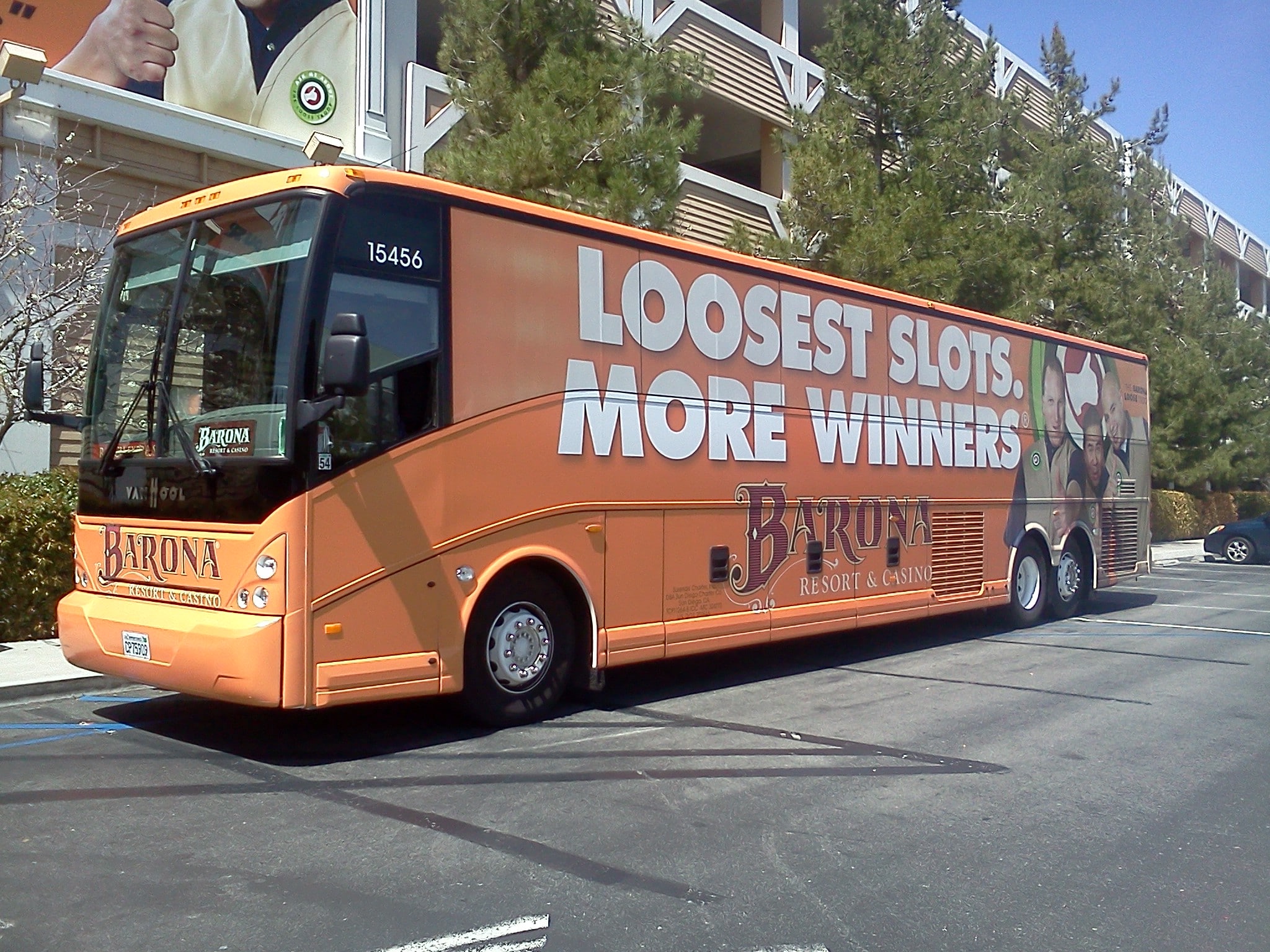 Barona Resort & Casino called into 858 Graphics looking for ways they could expand their advertising footprint. Knowing that they utilize bus transportation, 858 Graphics suggested a customized bus wrap that would double as a mobile billboard. We then took detailed measurements of the vehicle and adjusted current print advertisement to maximize the exposure of the bus. They were ecstatic with the results and raved about all of the expanded exposure they were getting.